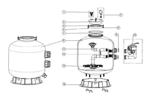 The Onda Side Mount Filter FS8 is a professional-grade side-mounted sand filter designed for efficient and reliable pool water filtration.